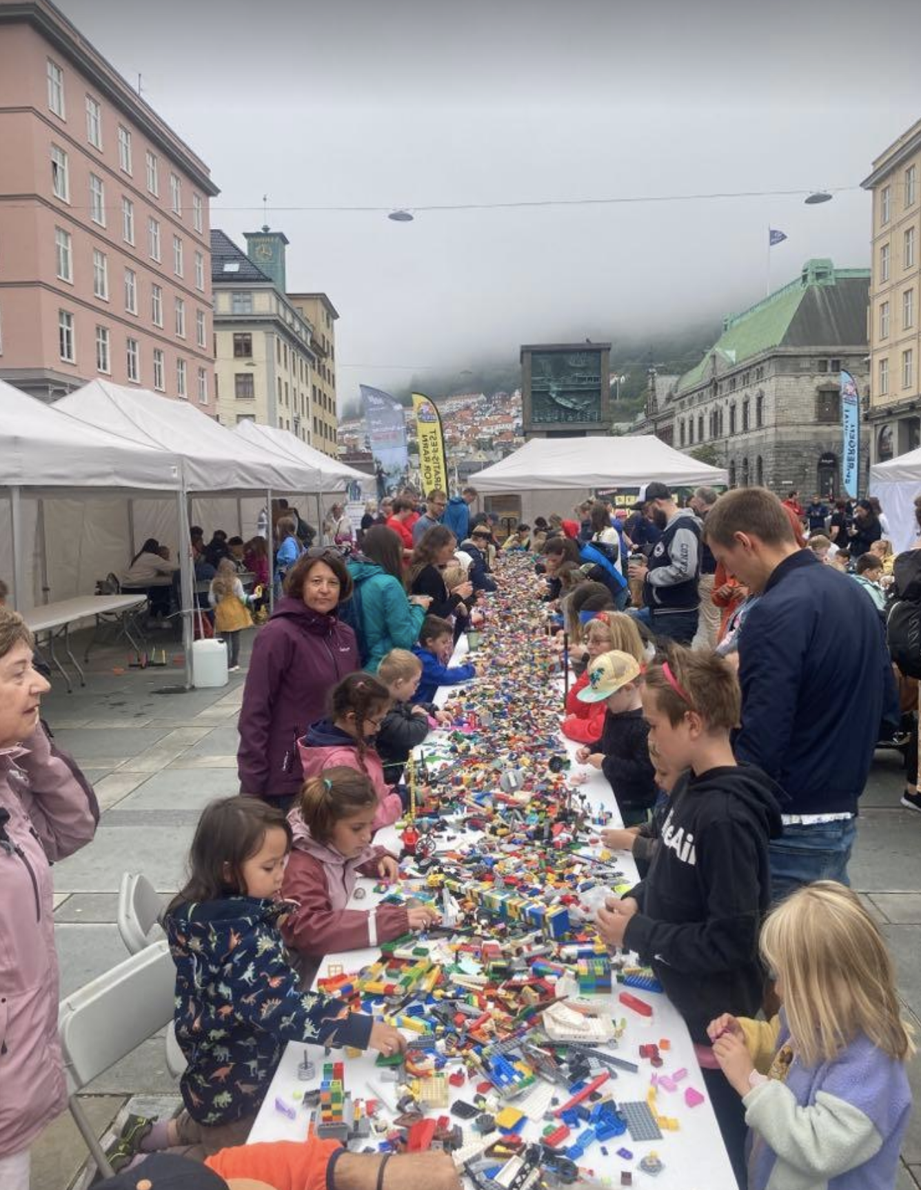 Vi er på Torgallmenningen som i fjor med kassevis av lego, sjakk, gigant-scrabble, og to nye Fire på rad-spill.
