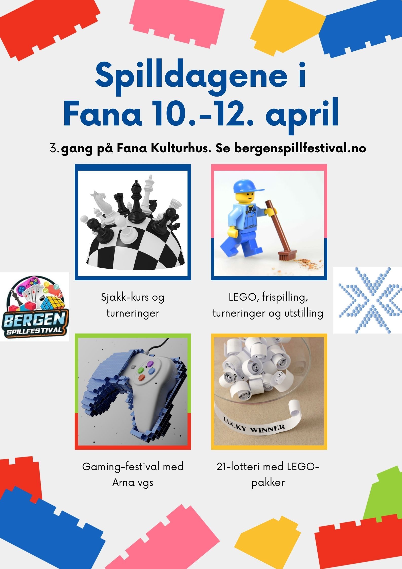 For første gang arrangerer Bergen Spillfestival en felles jentekveld for de som liker sjakk, gaming og LEGO. Vi har fått hele hovedsalen på Fana Kulturhus!